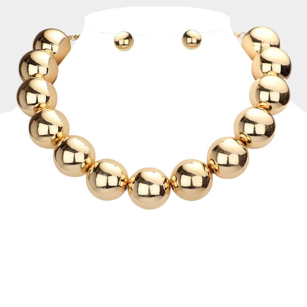 Oversized Bold Two Tone Pearl Metal Ball Beaded Statement Necklace