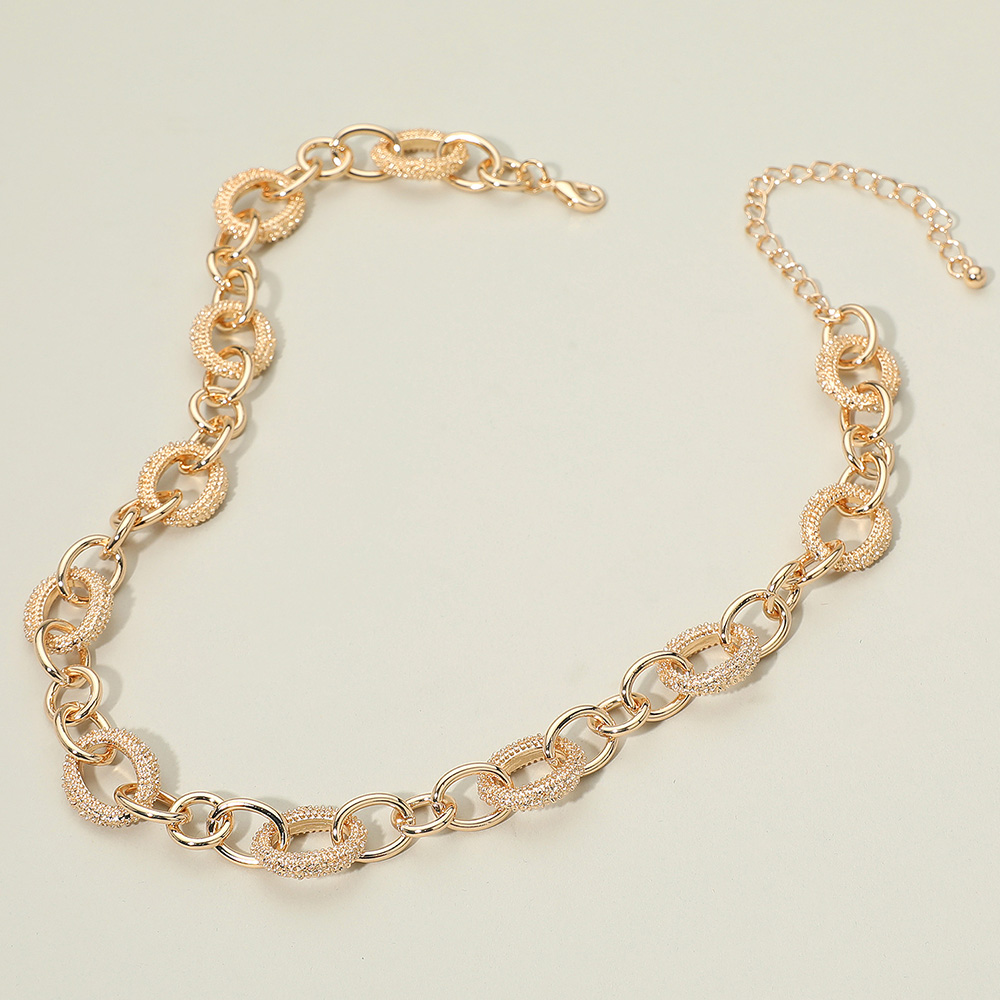 Details • Necklace Size : 16.5" + 3.5" L • Decor Size : 0.6" L • Elevate your look with this textured link chain necklace featuring alternating smooth and detailed circular links. A bold yet versatile statement piece, perfect for layering or wearing solo. Designed for modern style and timeless appeal, this chain necklace adds sophistication to any outfit. • Lead and Nickel Compliant
