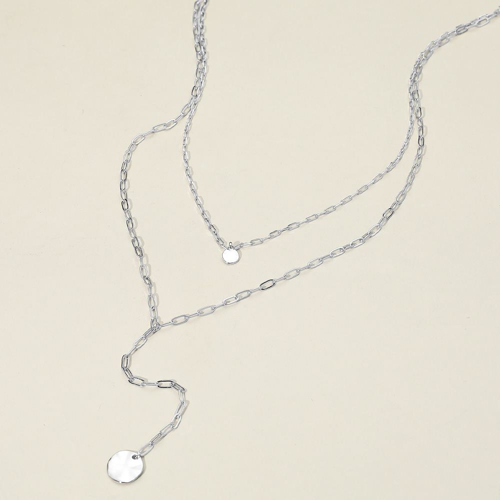 Crushed Metal Disc Pendant Double Layered Y Necklace