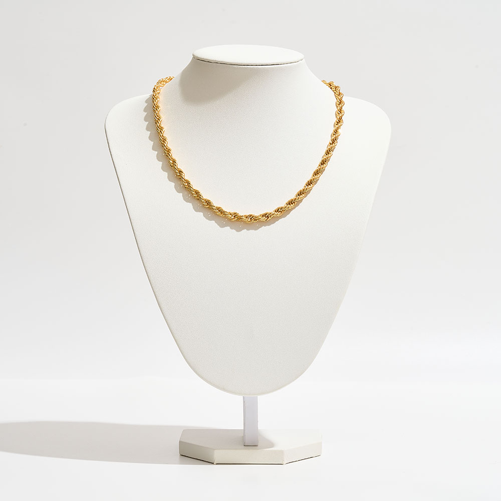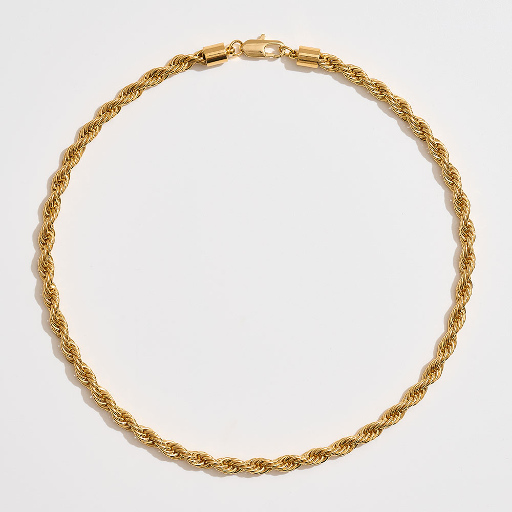 • This bold rope chain necklace showcases a timeless twisted design that adds texture and elegance to any look. Made from durable brass, it is perfect for layering or wearing as a statement piece. A versatile accessory that transitions seamlessly from day to night.