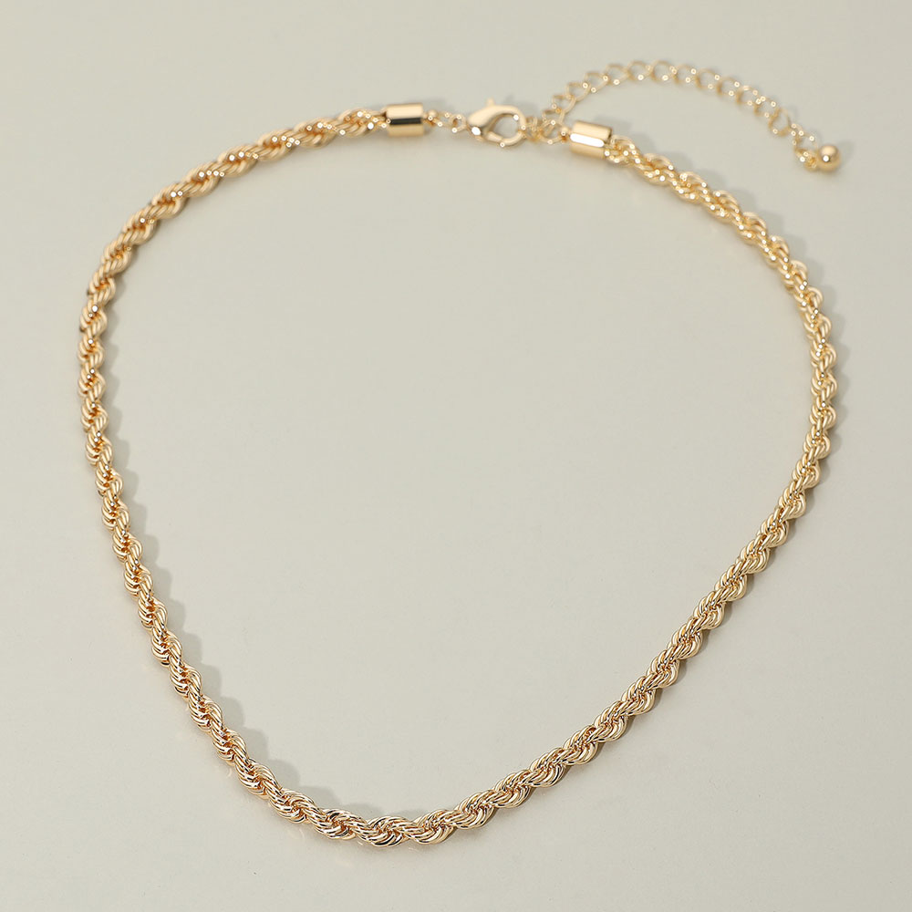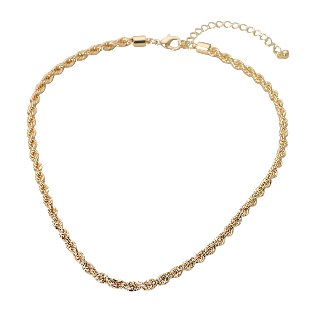 Details • Necklace Size : 19" + 3" L • Decor Size : 0.25" L • Elevate your look with this twisted rope chain necklace, designed with interwoven links that create a bold yet timeless texture. Perfect as a standalone statement or layered with other pieces, this versatile chain adds sophistication and enduring style to any jewelry collection. • Gold Dipped • Lead and Nickel Compliant