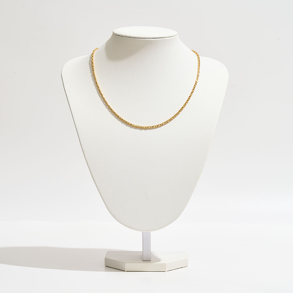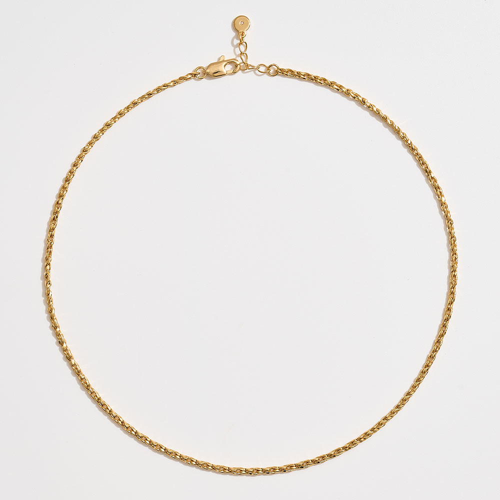 Details • Necklace Size : 18" + 1" L • Decor Size : 0.2" L • Add classic elegance to your look with this rope chain necklace, designed with intricate twisted links that catch the light beautifully. Perfect for layering or wearing solo, it’s a versatile staple that transitions effortlessly from everyday wear to special occasions. • Brass • Gold Dipped • Hypoallergenic • Made In Korea