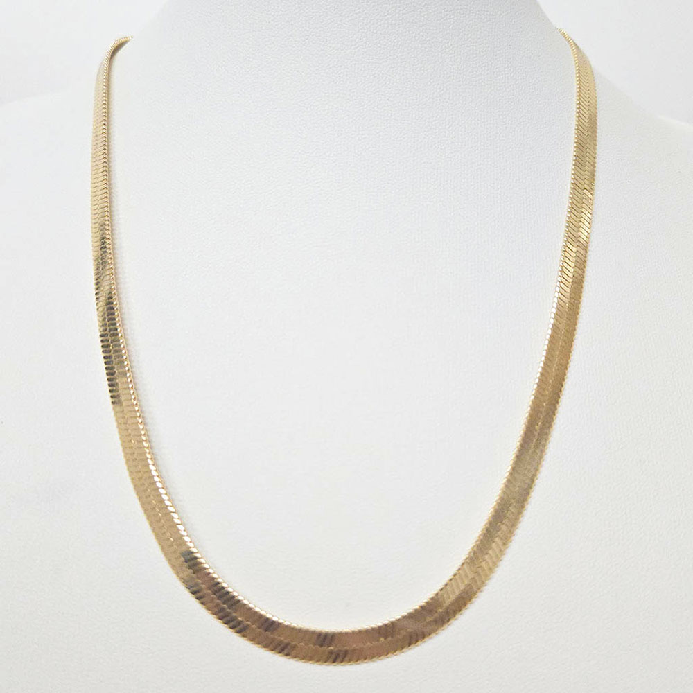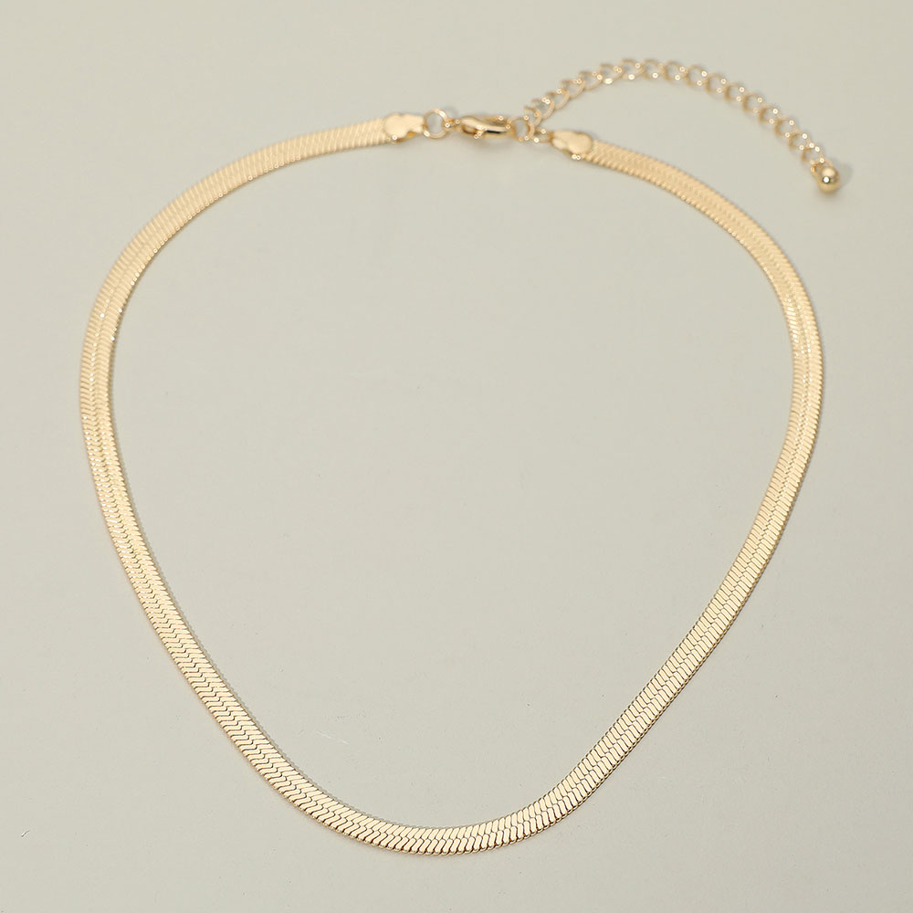 Details • Necklace Size : 19" + 3" L • Decor Size : 0.25" L • Discover effortless sophistication with this herringbone chain necklace, crafted with smooth, flat links that reflect light beautifully. Its sleek and modern design makes it the perfect versatile accessory, ideal for layering or wearing alone to elevate any outfit. • Gold Dipped • Lead and Nickel Compliant