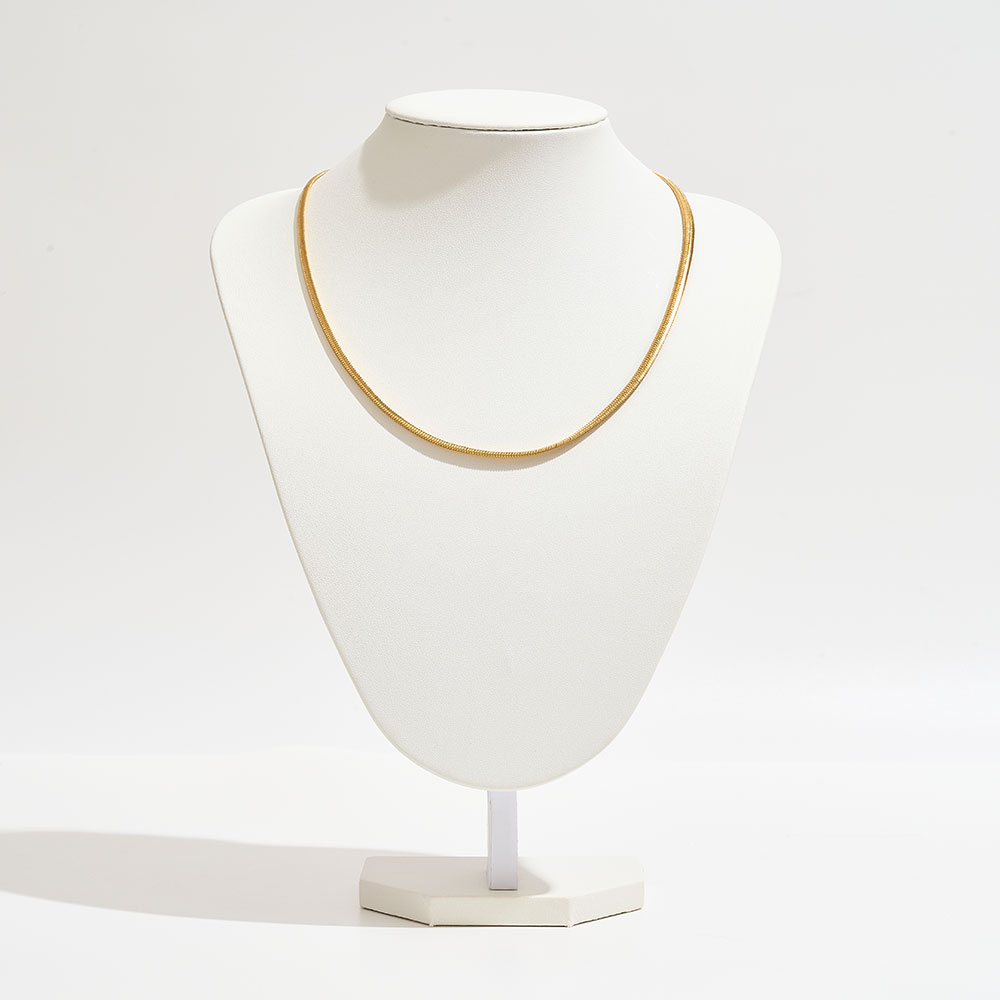 • Elevate your look with this sleek snake chain necklace. Its smooth, flexible design drapes effortlessly along the neckline, offering a refined finish. Perfect for layering or as a standalone accent, this timeless piece adds modern sophistication to any outfit.