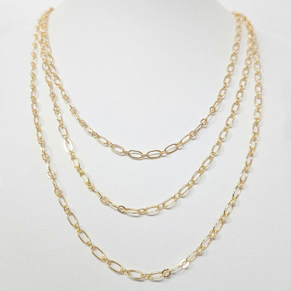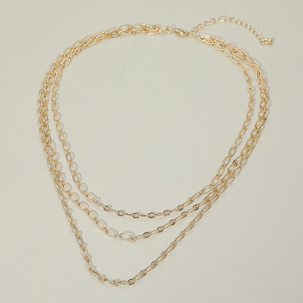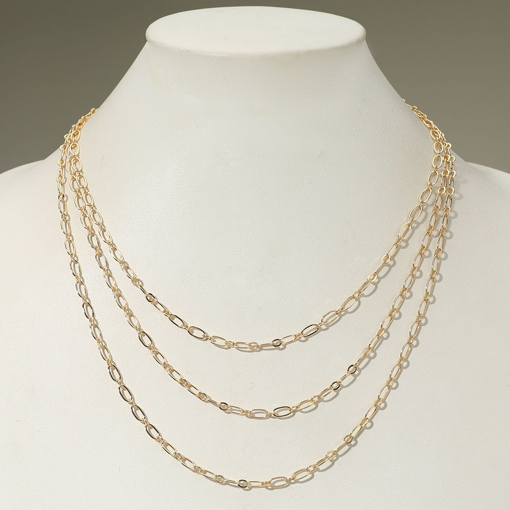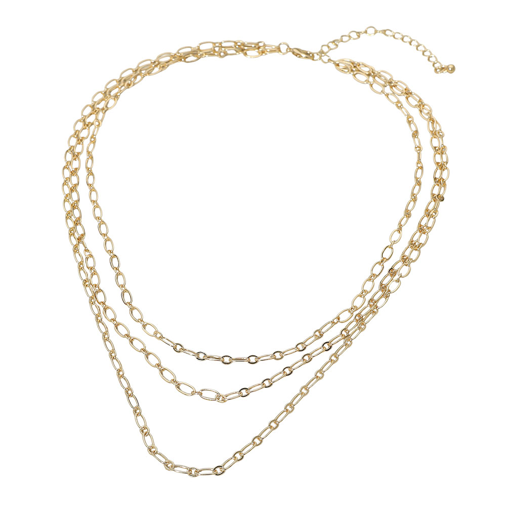 Gold Dipped Triple Layered Oval Link Chain Necklace