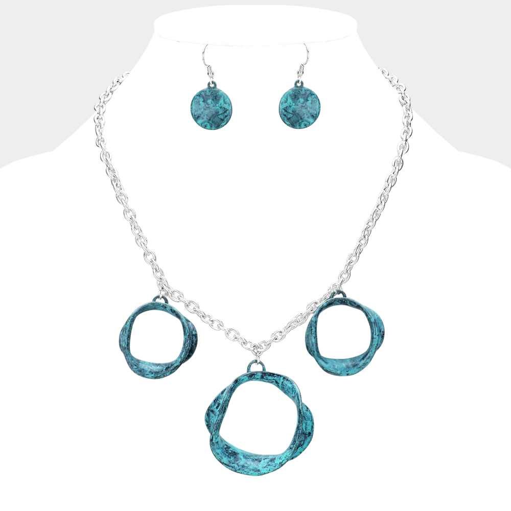 Vintage Metal Engraved Circle Beaded Stretch Bracelet