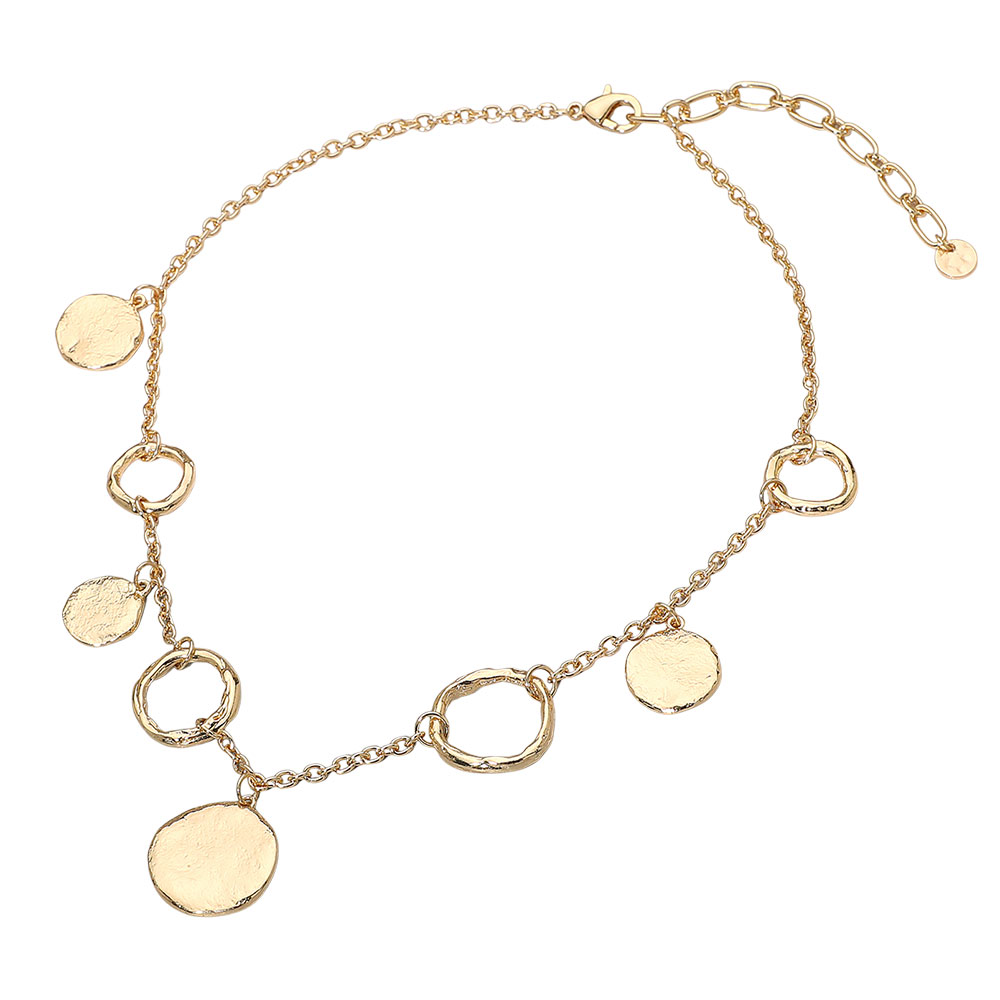 Details • Necklace Size : 17.5" + 3" L • Decor Size : 1.1" L • Make a subtle statement with this disc charm link necklace showcasing alternating textured links and dangling accents for eye-catching movement and modern appeal. Designed for versatile styling, it complements both casual looks and elevated outfits with effortless charm. • Lead and Nickel Compliant