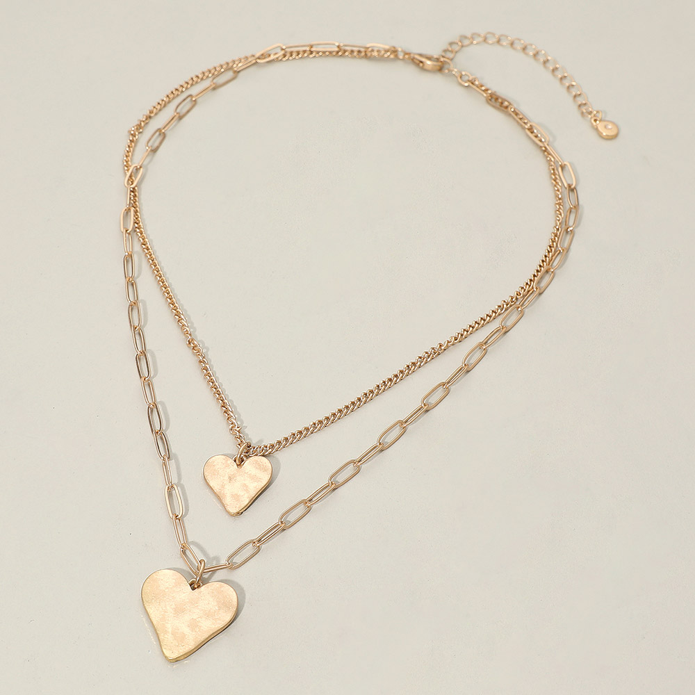 Details • Necklace Size : 16" + 3" L • Decor Size : 2.25" L • Pendant Size : 0.8" X 0.8" • Chic layered necklace featuring dual heart pendants for effortless statement styling. Perfect for casual outfits, date nights, or special occasions, it adds dimension and charm to any look while offering a versatile accessory ideal for gifting or daily wear. • Lead and Nickel Compliant