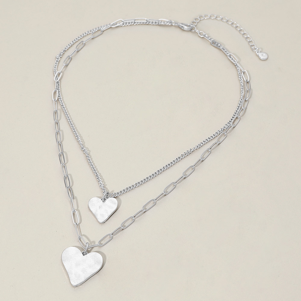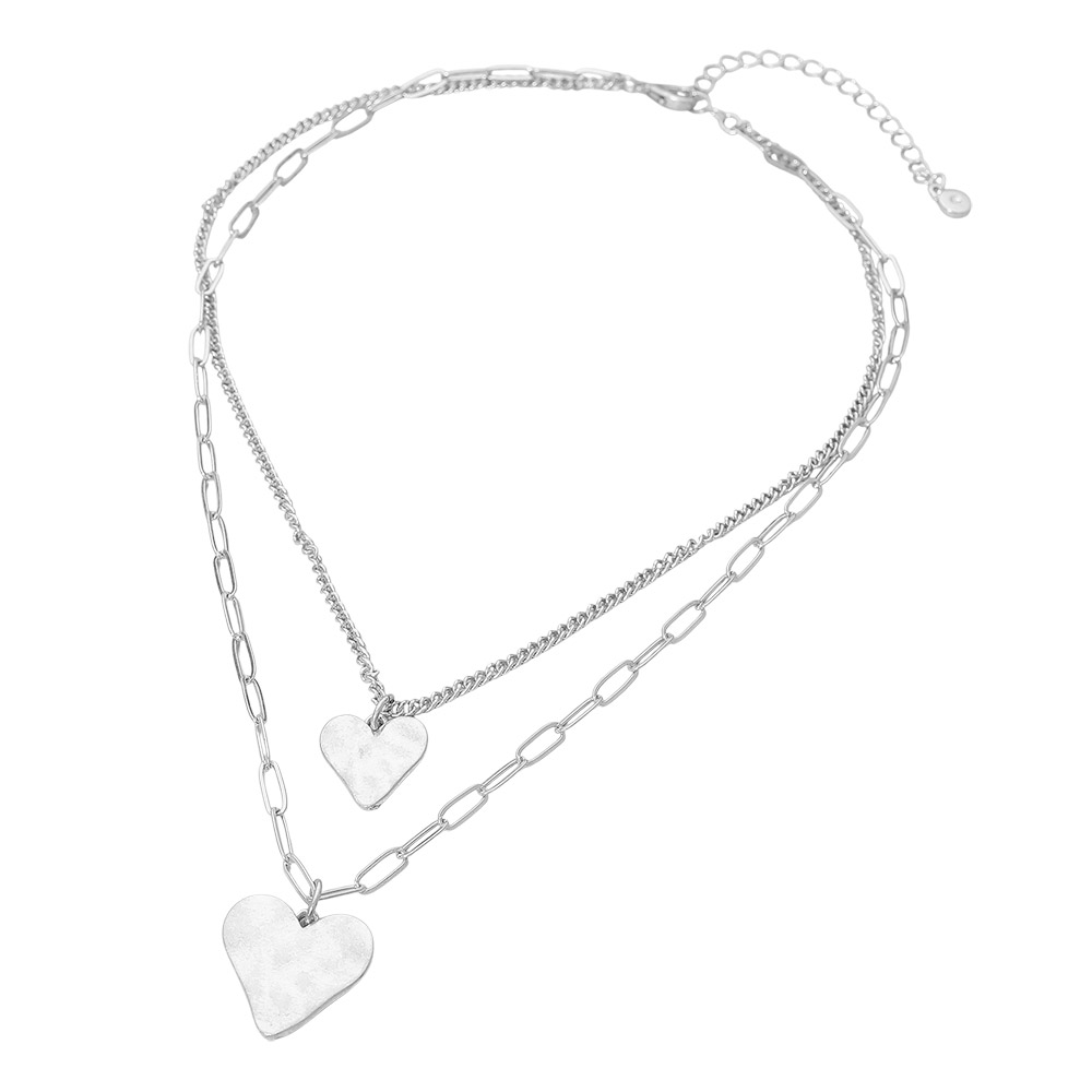 Hammered Metal Heart Pendant Accent Double Layered Necklace