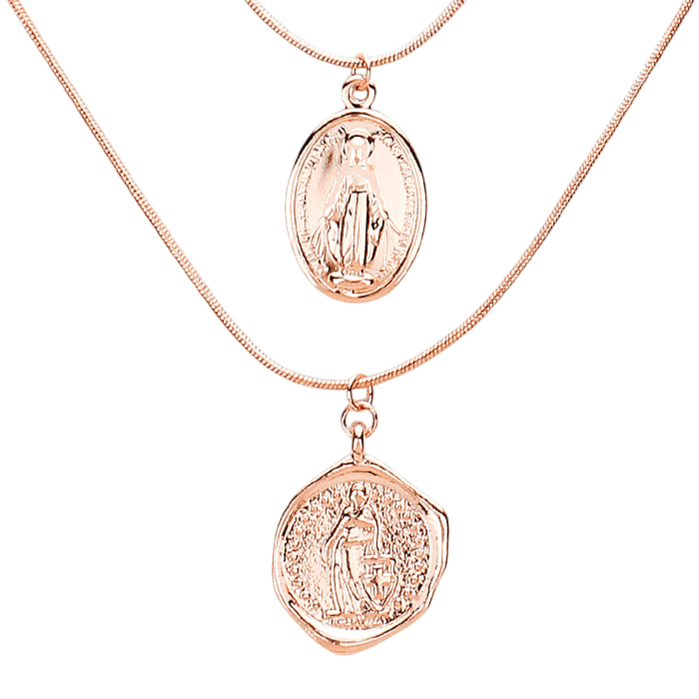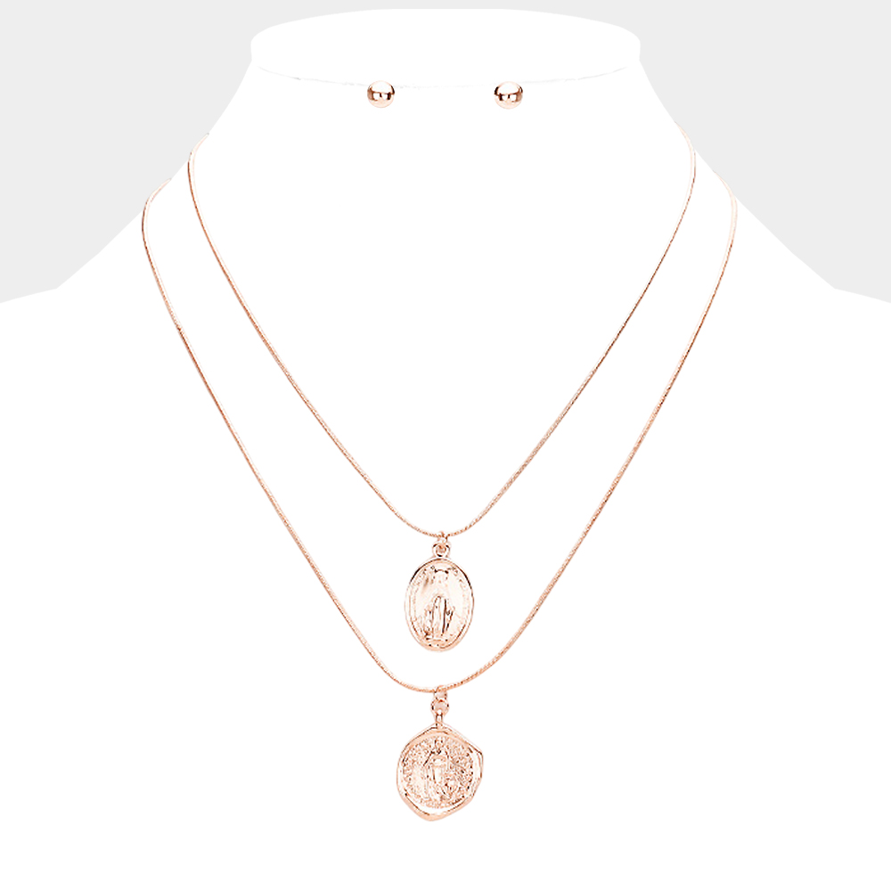Layered Saint Mary Metal Pendant Necklace