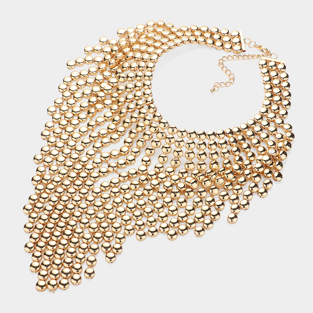 Metal Ball Fringe Collar Statement Necklace