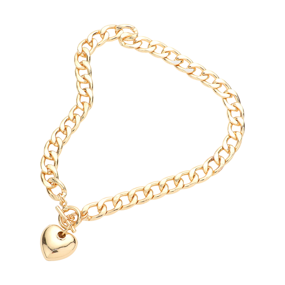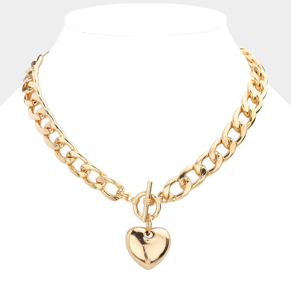 Metal heart charm toggle necklace