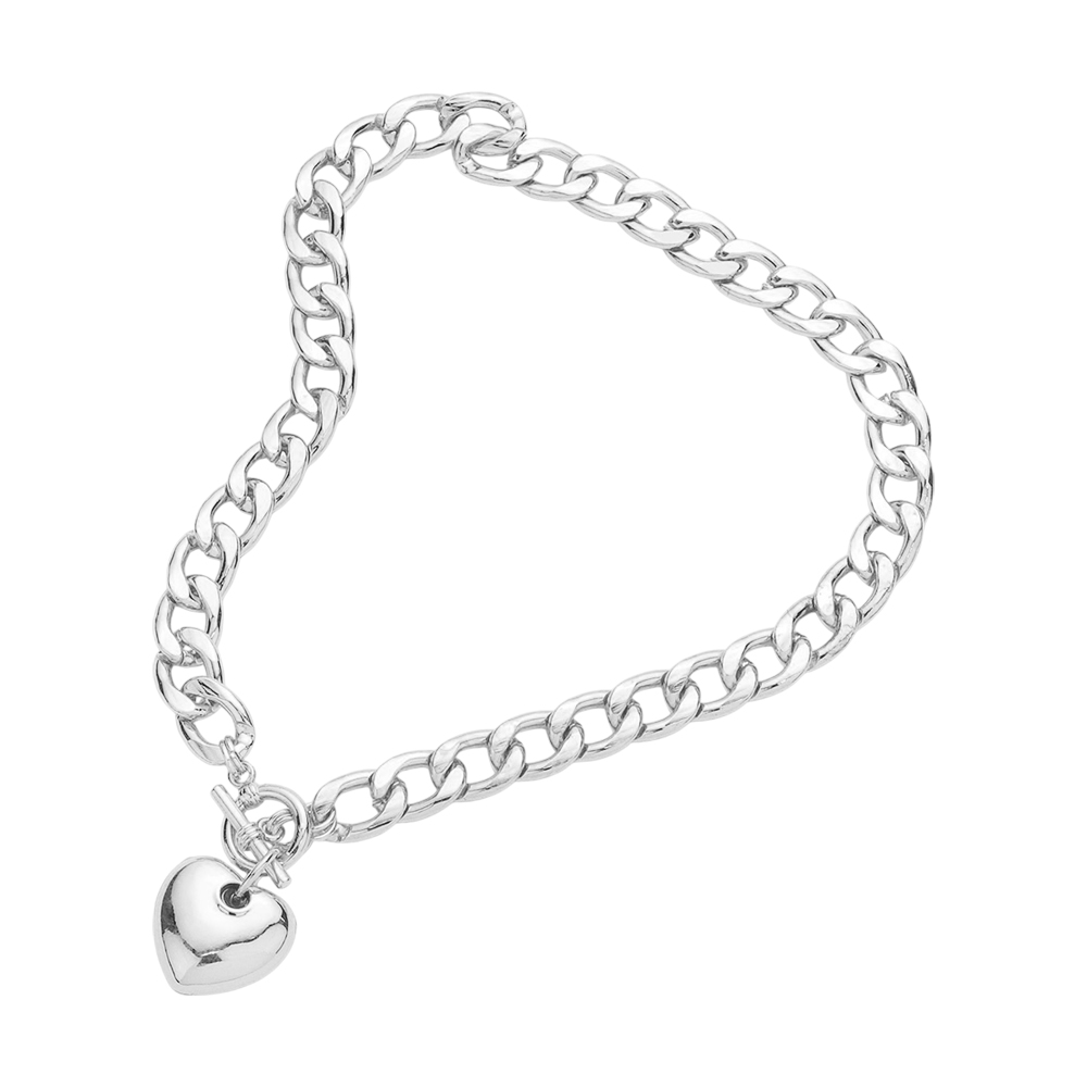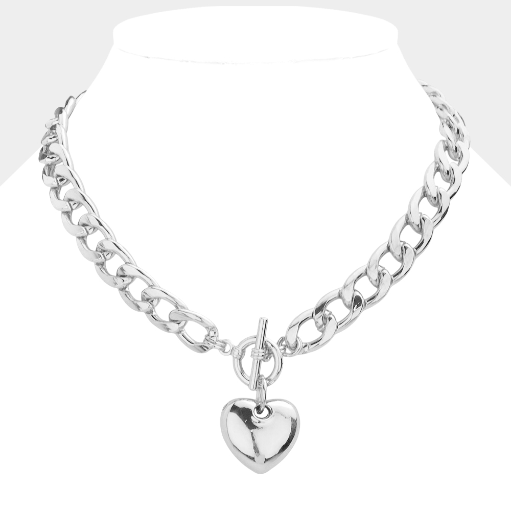 Metal heart charm toggle necklace