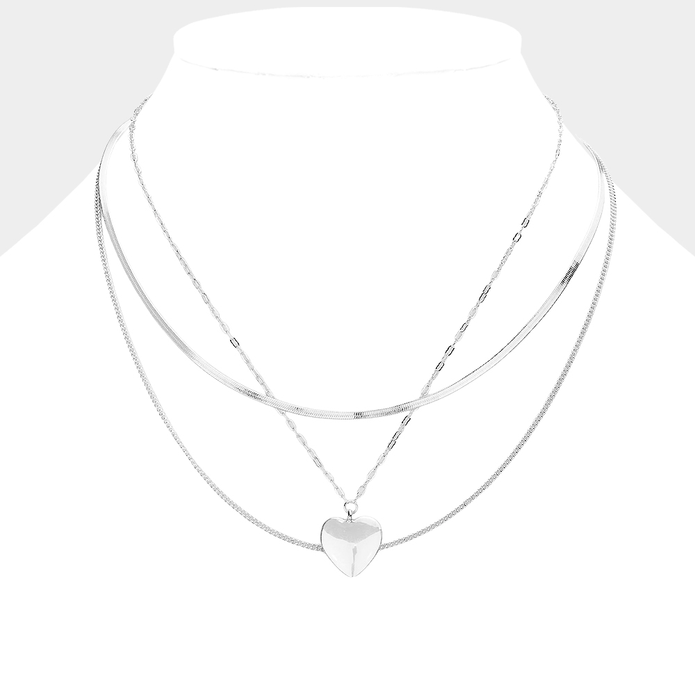 Gold Dipped Industrial Link Chain Puffy Heart Charm Bracelet