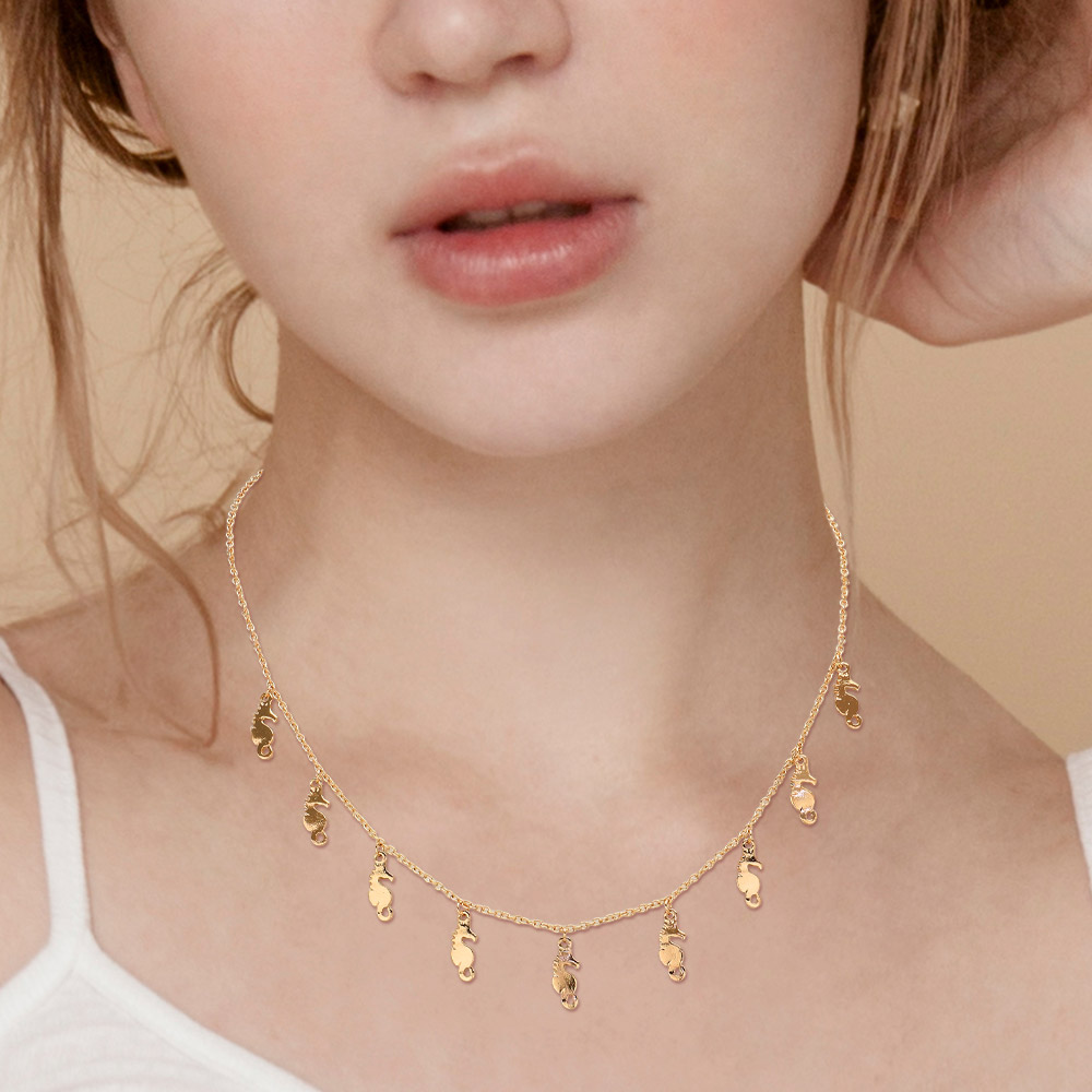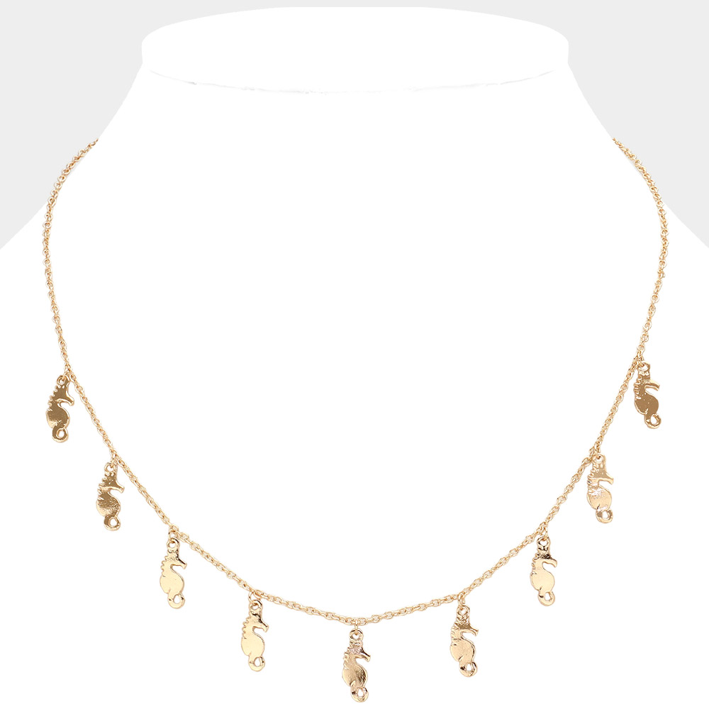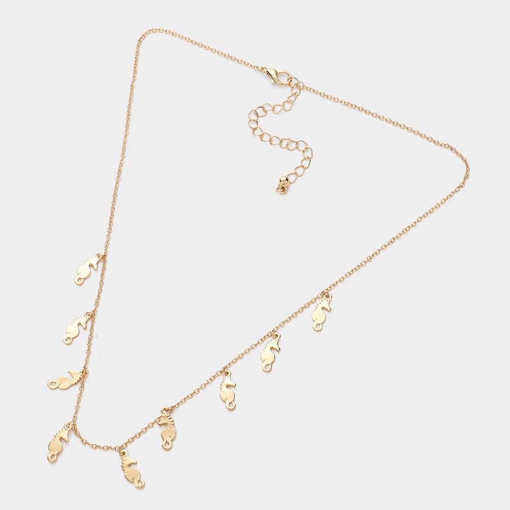 Metal Seahorse Charm Station Necklace