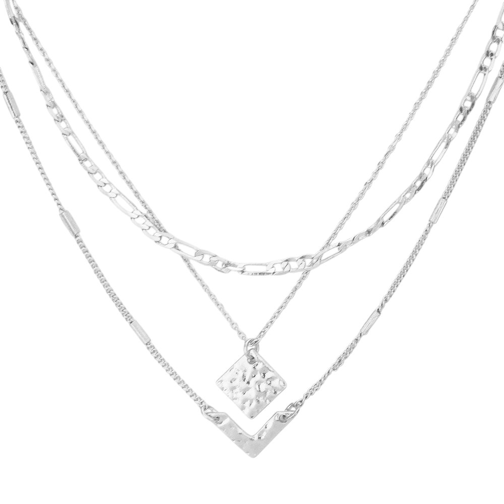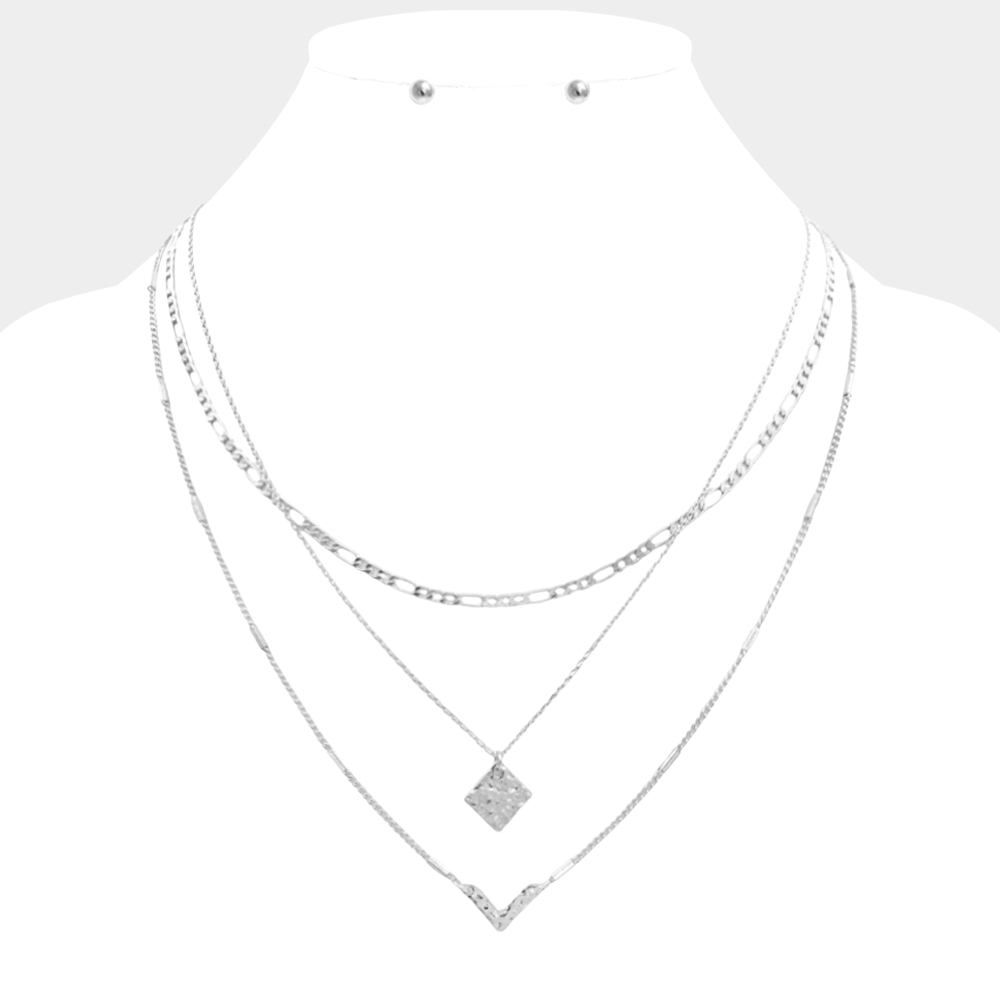 Brushed Metal Heart Cross Pearl Charm Station Chunky Necklace