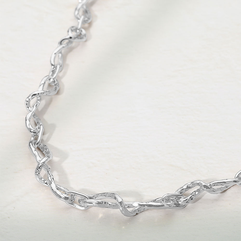 • Add modern edge to your look with this twisted irregular chain necklace featuring unique textured links and a polished finish. Designed with an adjustable closure for a custom fit, this versatile piece is perfect for layering or wearing solo, making it an ideal statement for everyday style.