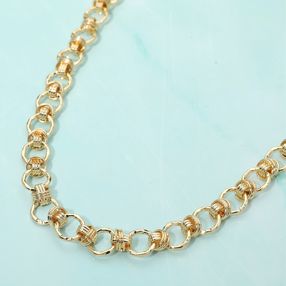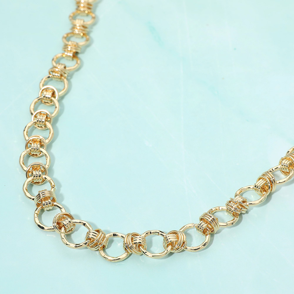 Details • Necklace Size : 17" + 3" L • Decor Size : 0.5" L • Elevate any look with this wrapped link chain necklace featuring distinctive textured connectors and an adjustable extender for a custom fit. Perfect for wearing solo or layering, it adds eye-catching dimension and modern flair to everyday outfits or special occasion styling. • Lead and Nickel Compliant