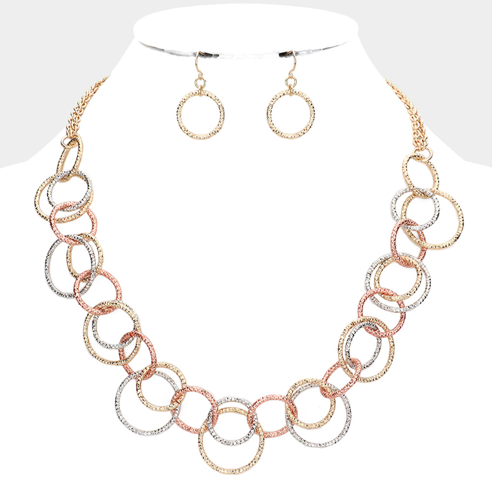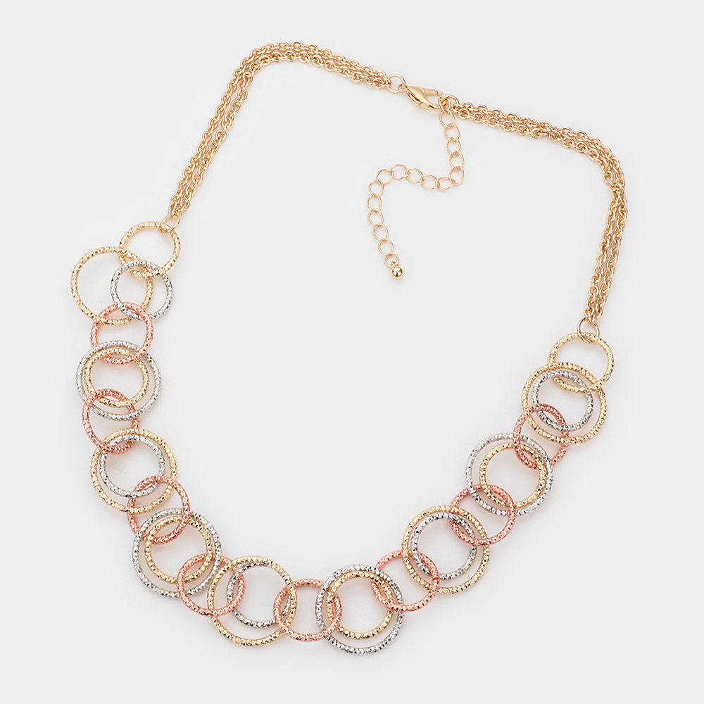 Gold Dipped Layered Flat Disc Accent Curb Chain Necklace