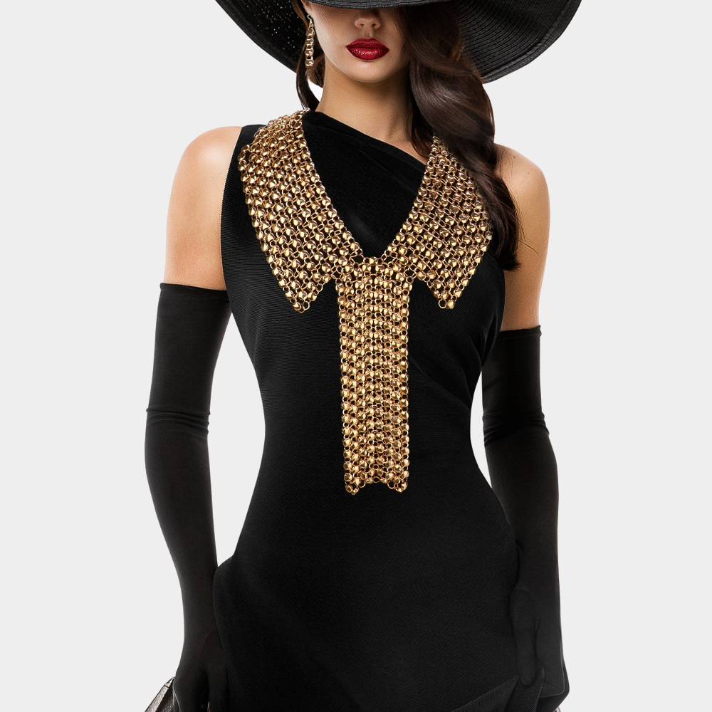 Pearl Metal Crescent Charm Station Abstract Chain Statement Necklace