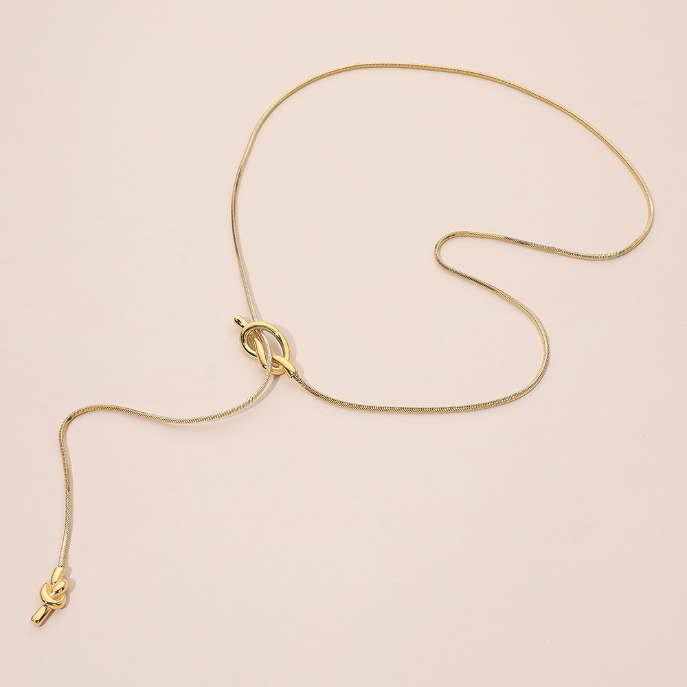 SECRET BOX_Stainless Steel Adjustable Knotted Lariat Necklace