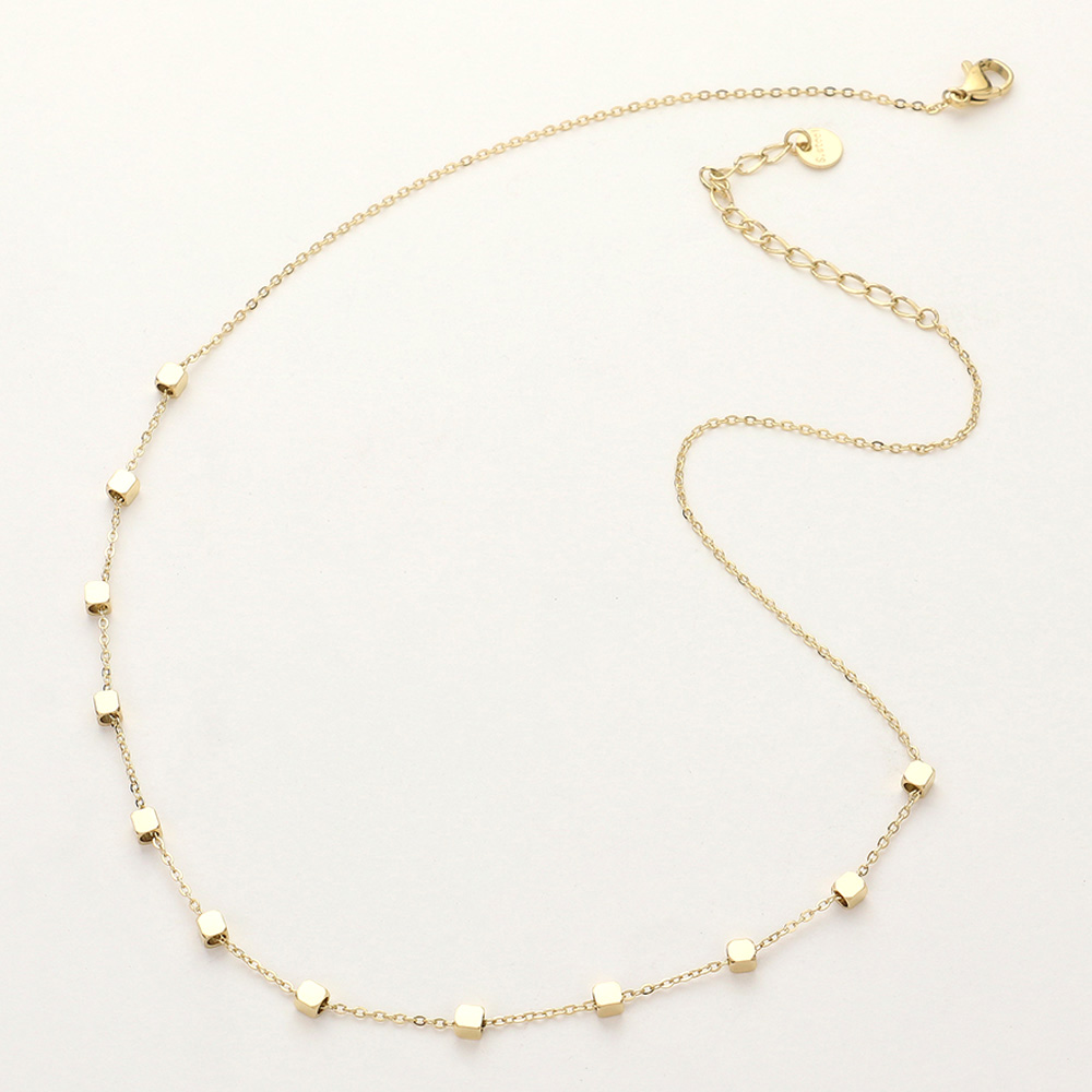 Details • Size : 16.5" + 2.5" L • Decor Size : 0.1" L • Delicate station chain necklace designed with evenly spaced geometric accents for a clean, modern look. Lightweight and easy to layer or wear alone, it adds subtle elegance to casual and dressy outfits. Ideal for daily wear, work styling, gifting, and minimalist accessory collections. • Stainless Steel