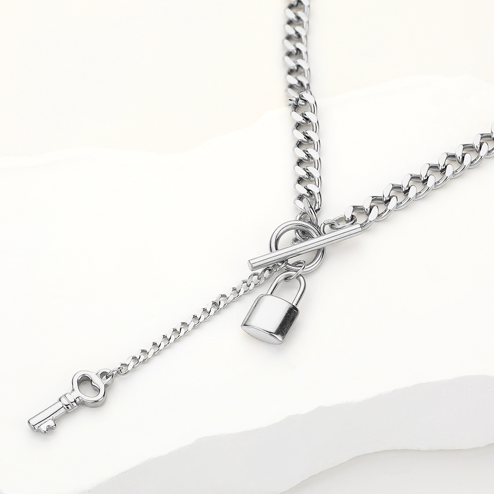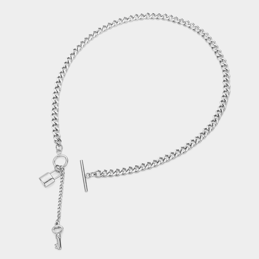 SECRET BOX_Stainless Steel Key and Lock Toggle Chain Necklace