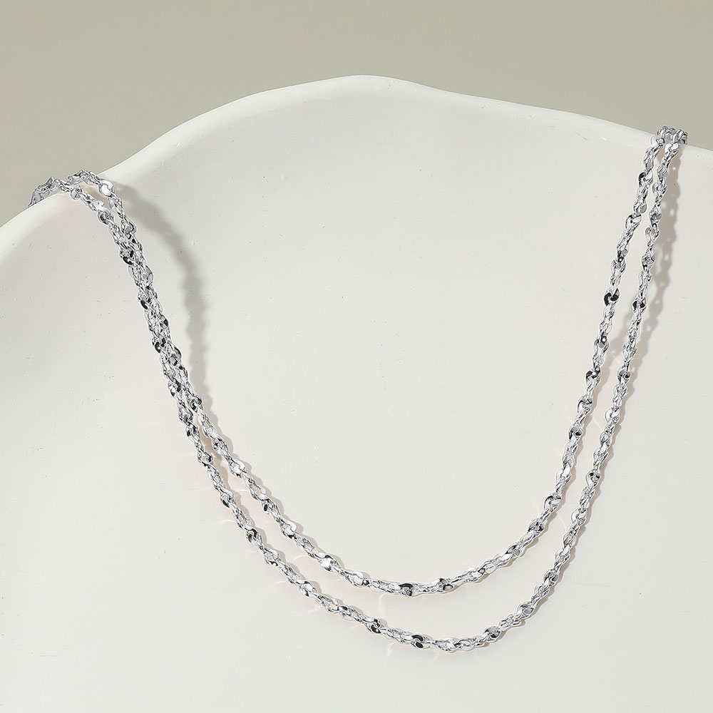 Details • Necklace Size : 18" + 3" L • Decor Size : 1" L • Add timeless style to your collection with this layered twisted chain necklace featuring subtle texture and elegant design. Perfect for layering with other pieces or wearing on its own, this versatile necklace brings a chic minimalist touch to both everyday outfits and dressy occasions. • Lead and Nickel Compliant • Sterling Silver Dipped