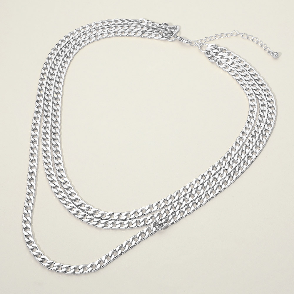 Silver Dipped Triple Layer Cuban Chain Necklace Silver Dipped Triple Layer Cuban Chain Necklace Silver Dipped Triple Layer Cuban Chain Necklace