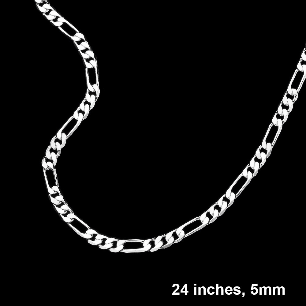 Silver Plated 24 Inch 5mm Figaro Metal Chain Necklace