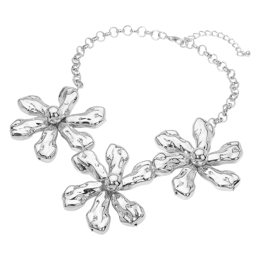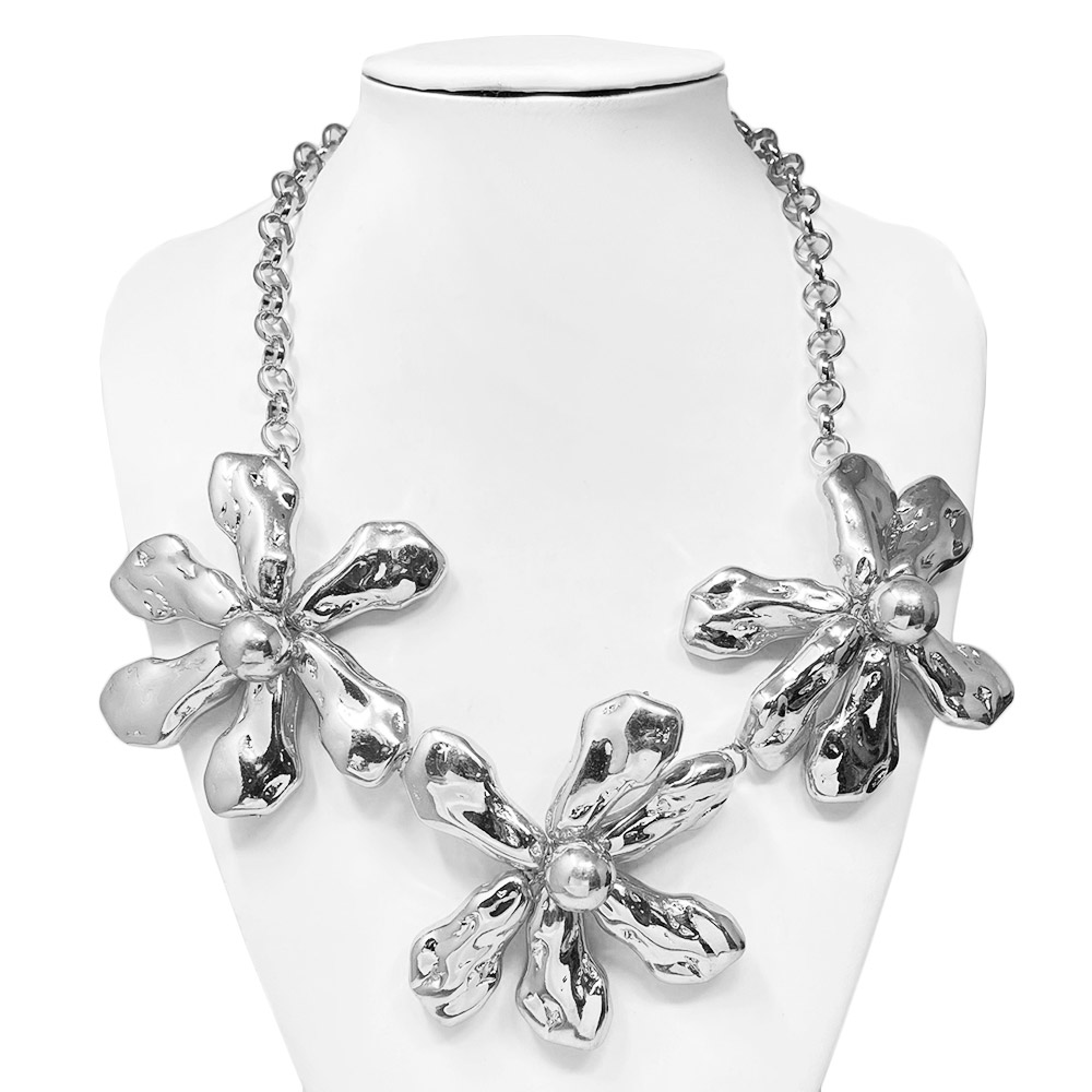 Triple Puffy Metal Flower Link Statement Necklace Triple Puffy Metal Flower Link Statement Necklace Triple Puffy Metal Flower Link Statement Necklace