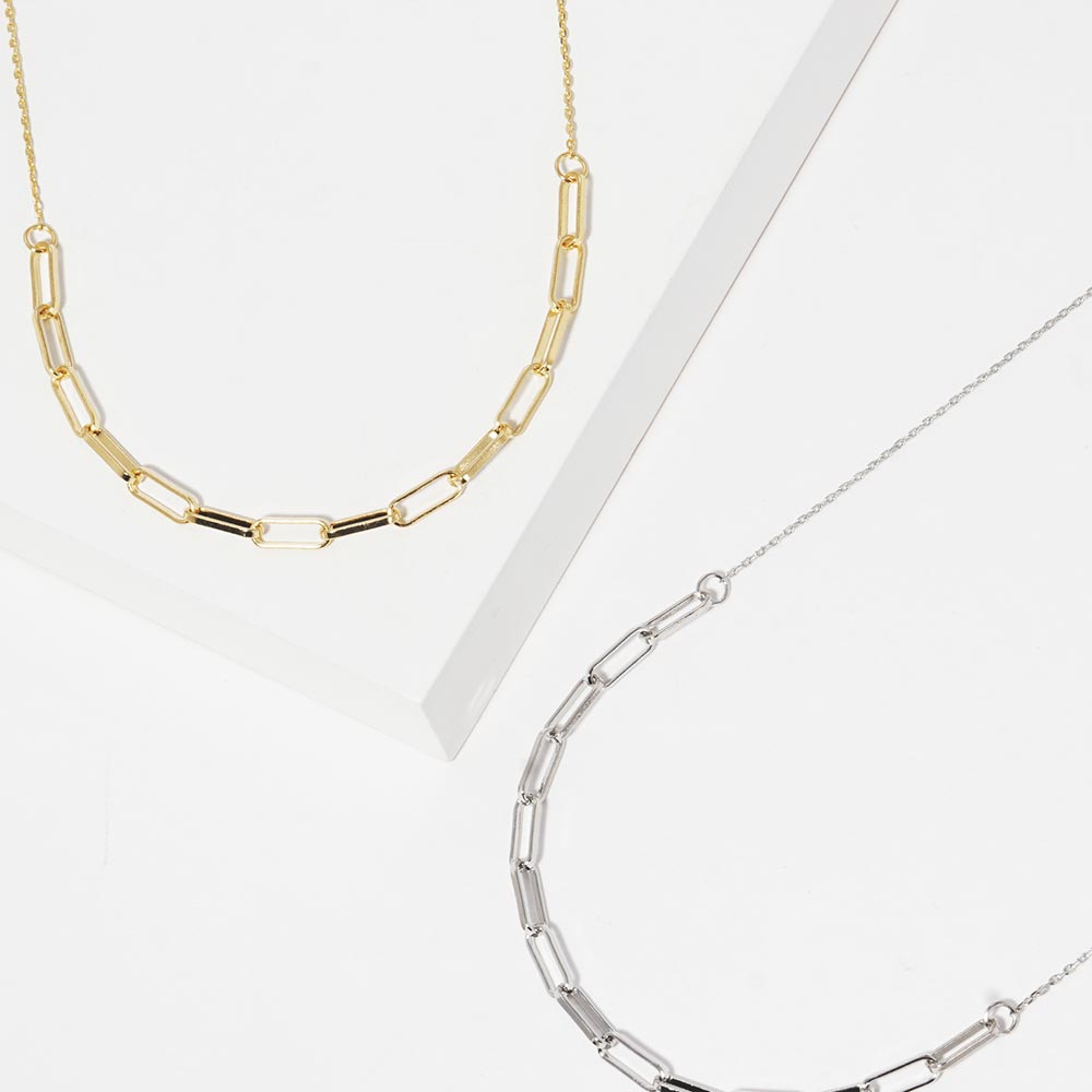 Details • Necklace Size : 16" + 2" • Decor Size : 0.15" L • Embrace understated elegance with this sleek paperclip link necklace, crafted with refined elongated links that add a modern touch to any look. Ideal for layering or wearing solo, this minimalist piece offers effortless sophistication for both casual and formal occasions. • Lead and Nickel Compliant • Made In Korea • Gold Dipped • Brass