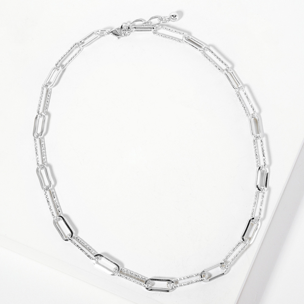 White Gold Dipped CZ Stone Paved Link Paperclip Chain Anklet