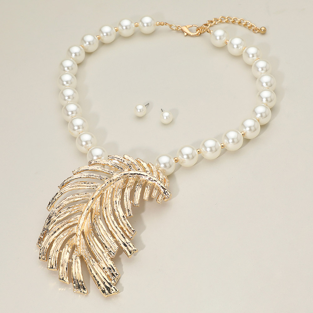 Details • Necklace Size : 20" + 3" L • Decor Size : 4.5" L • Earrings Size : 0.4" L • Add sophisticated charm with this pearl leaf pendant necklace and matching stud earring set designed to blend classic elegance with bold detail. Featuring a beaded strand and sculpted leaf focal point, it’s perfect for special occasions or elevated everyday wear, offering coordinated style and timeless appeal. • Lead and Nickel Compliant