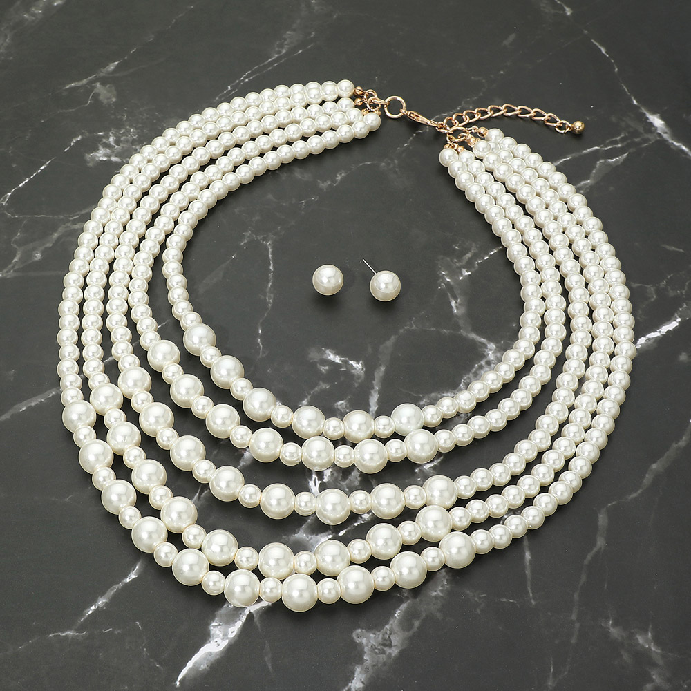 Classic Pearl Beaded Multi Strand Statement Necklace