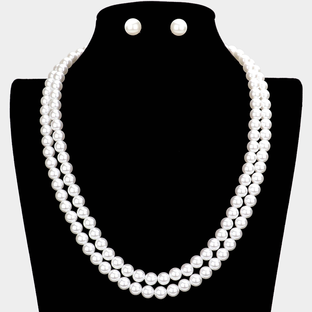 Chunky Metal Ball Accent Pearl Beaded Stretch Bracelet