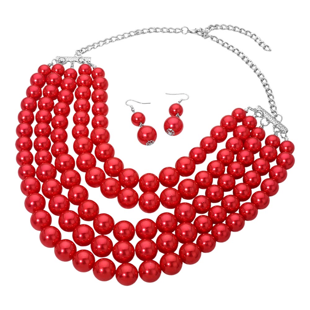 • This multi-strand bead necklace and earring set delivers a layered statement look with smooth, rounded beads arranged for volume and balance. Designed to elevate dressy outfits, special events, and boutique displays, it offers coordinated styling appeal that works for gifting, formal occasions, and trend-focused accessory collections.