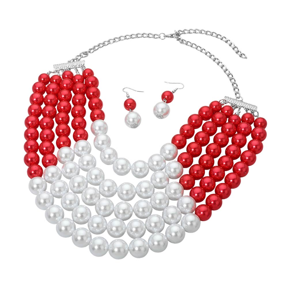 • This multi-strand bead necklace and earring set delivers a layered statement look with smooth, rounded beads arranged for volume and balance. Designed to elevate dressy outfits, special events, and boutique displays, it offers coordinated styling appeal that works for gifting, formal occasions, and trend-focused accessory collections.