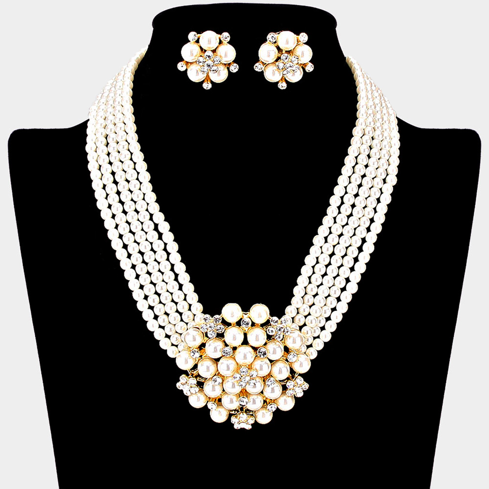 Pearl Centered Flower Teardrop Stone Link Dangle Earrings