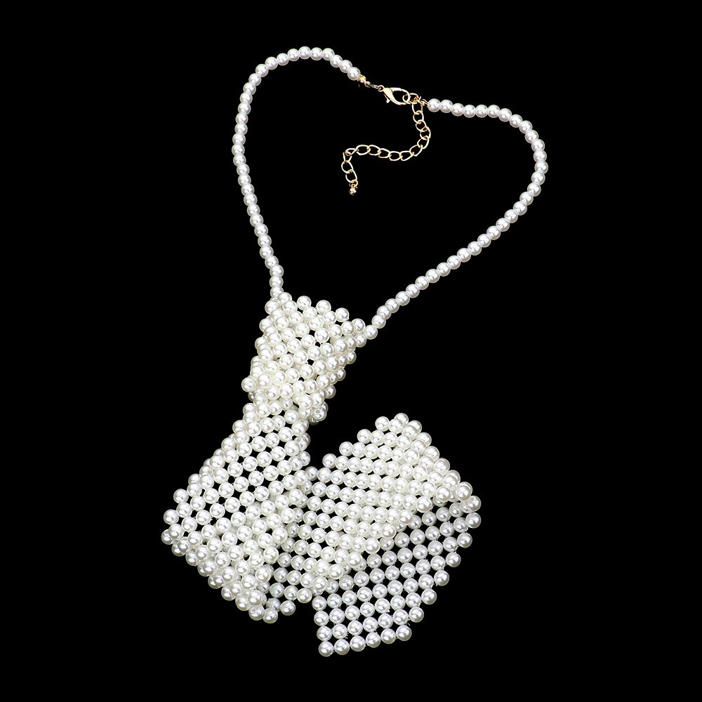 Pearl Accent Rhinestone Paved Teardrop Pendant Pearl Necklace