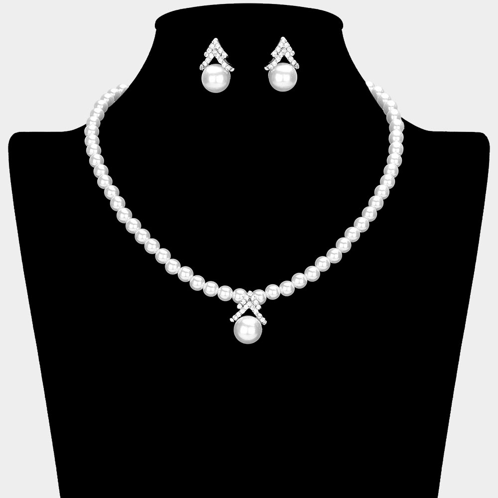 Mother of Pearl Quatrefoil Pendant Accent Pearl Beaded Layered Necklace