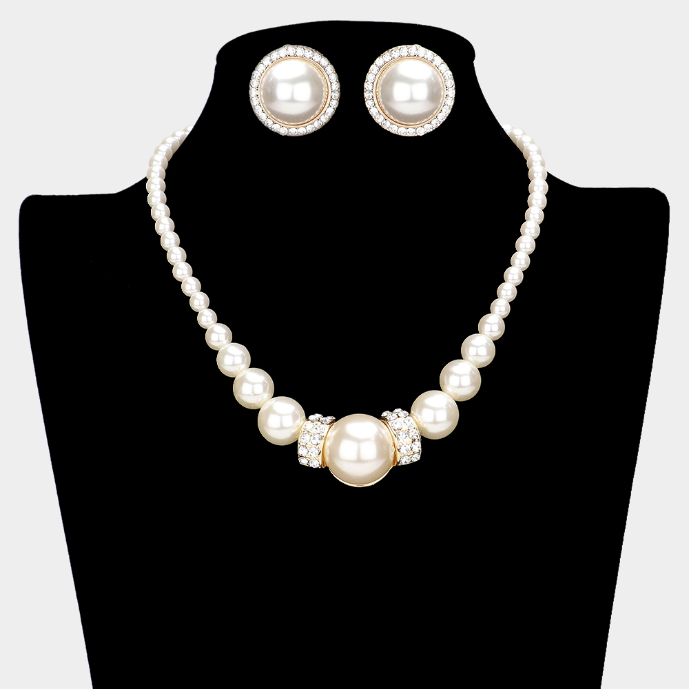 Pearl Pointed Bar Crystal Rhinestone Necklace Jewelry Set