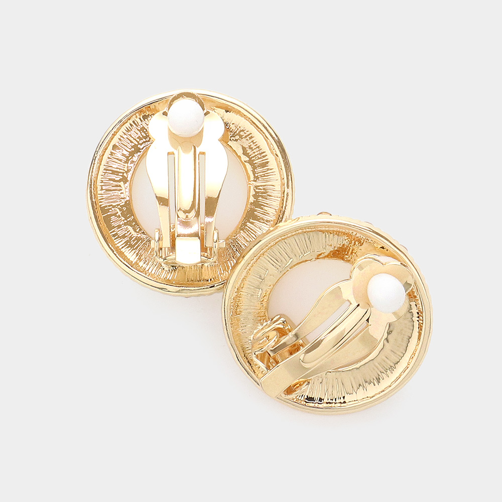 Rhinestone Paved Heart Pearl Clip On Earrings