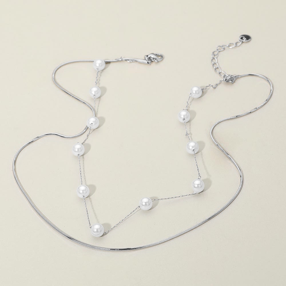 Details • Necklace Size : 14" + 2" L • Decor Size : 1.3" L • Water Resistant • A refined two-layer necklace featuring a smooth chain paired with a dainty strand accented by spaced pearl-style beads. Its lightweight, feminine design makes it perfect for daily wear, layering, or gifting, adding a touch of timeless elegance to any outfit. • Stainless Steel