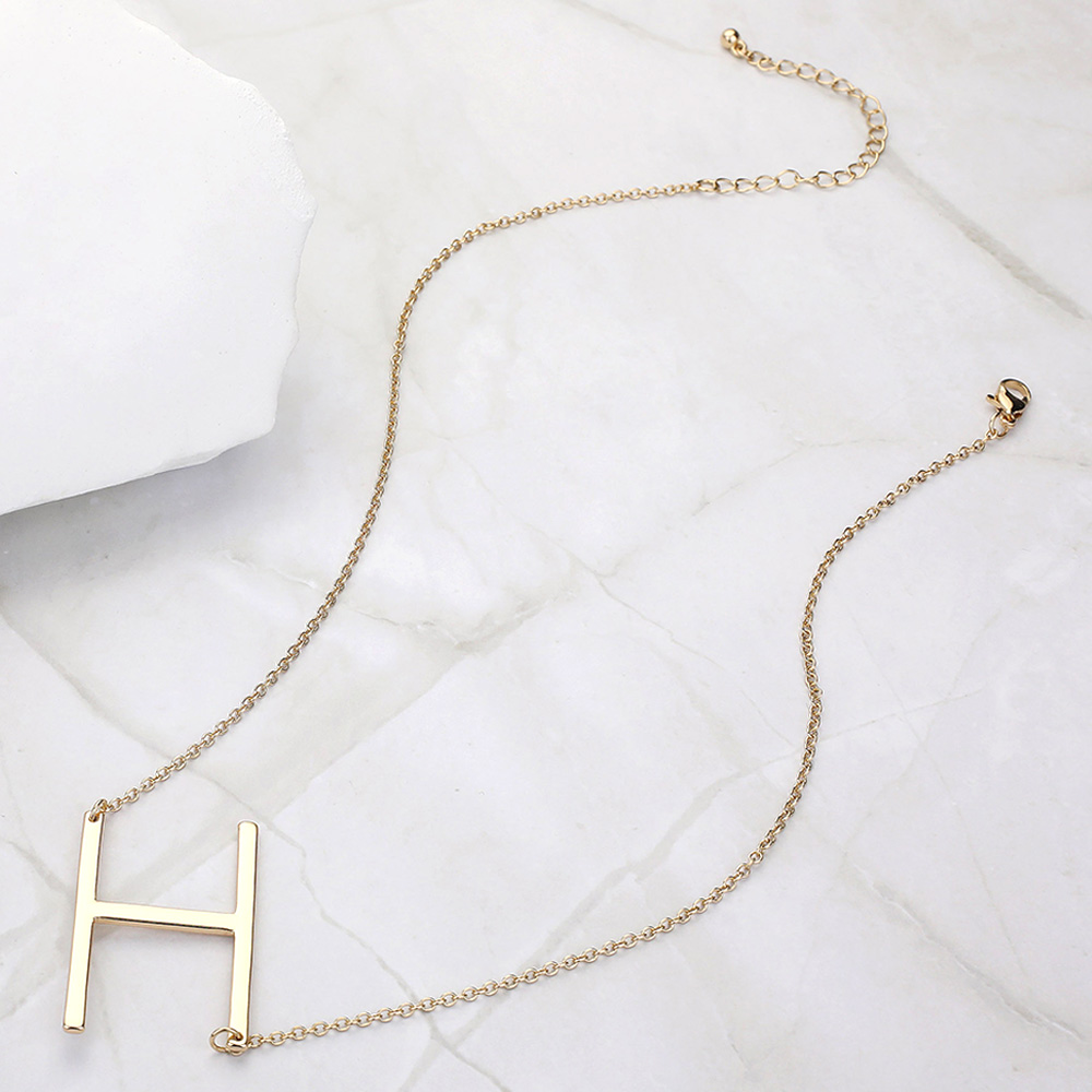 -B- Gold Dipped Initial Monogram Metal Pendant Necklace