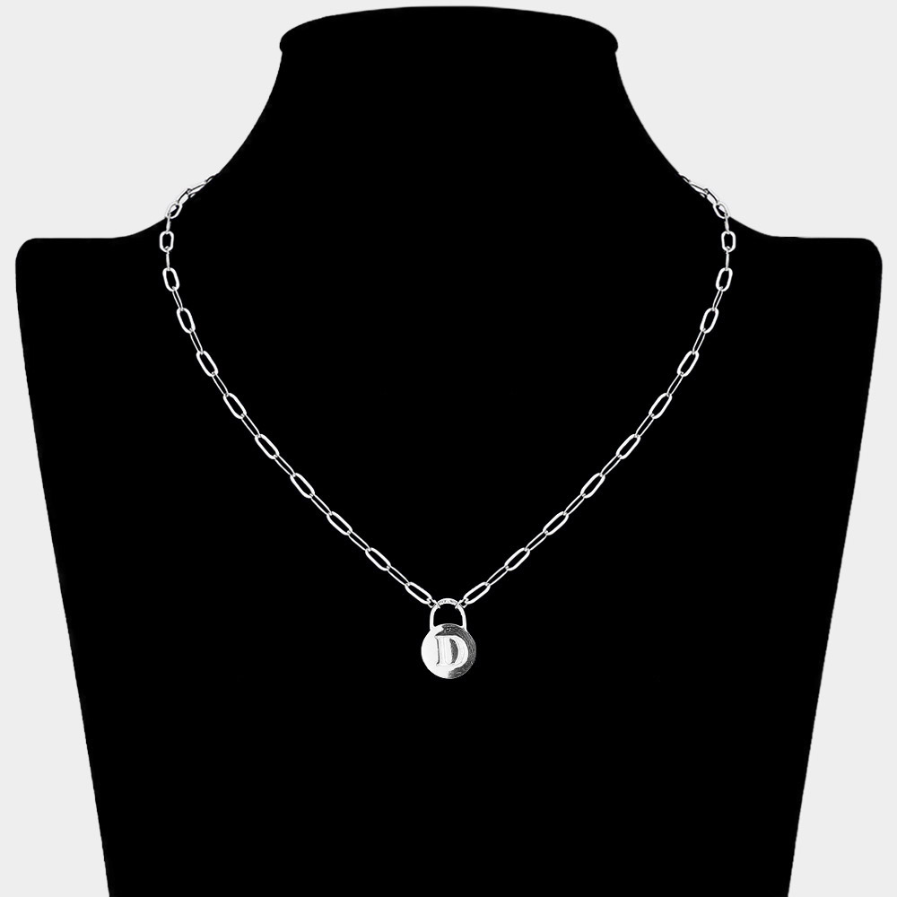 -W- Brass Metal Initial Monogram Lock Pendant Necklace