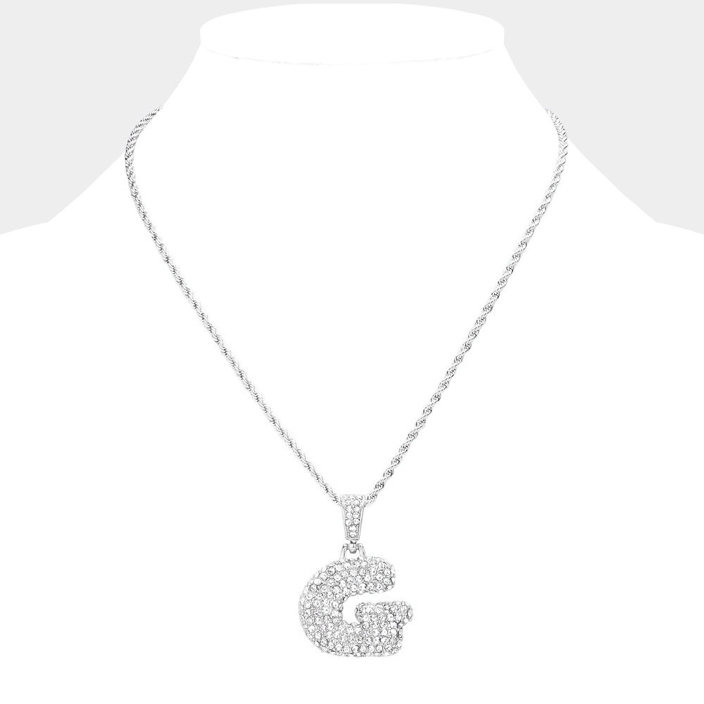 G- White Gold Dipped Initial Monogram Pendant Necklace