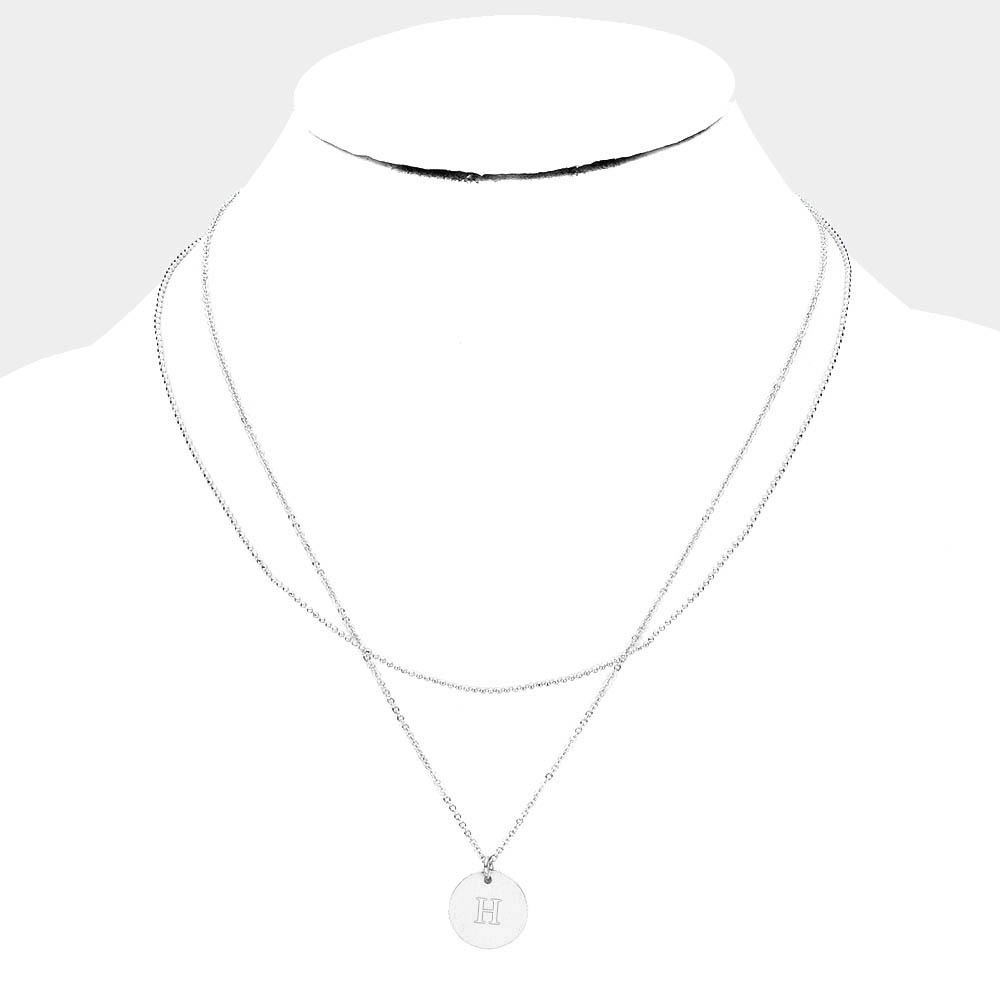 -R- Initial Monogram 2Row Strand Double Detachable Chain Necklace