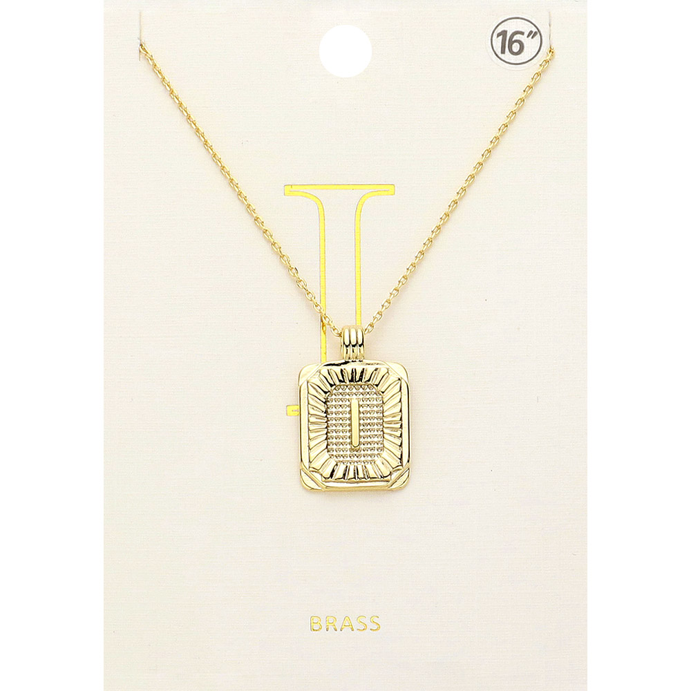 -D- Brass Metal Rectangle Initial Monogram Pendant Necklace
