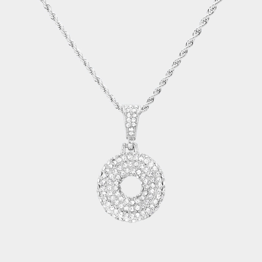 -O- CZ Stone Paved Initial Monogram Pendant Necklace